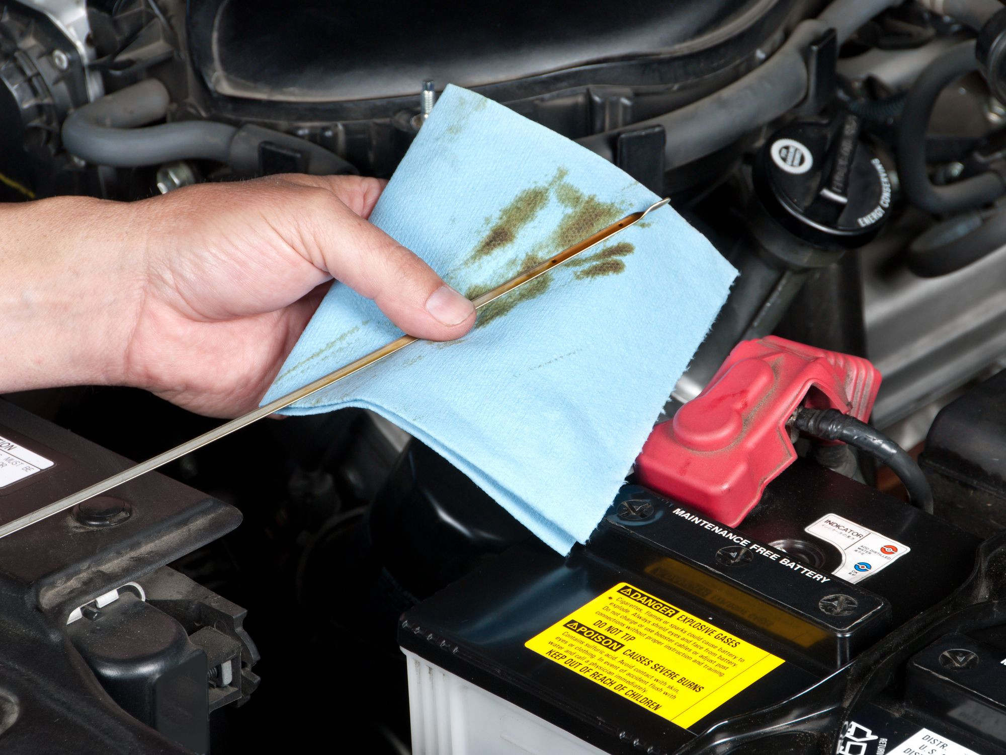 - Возьмите чистую ветошь. Она понадобится, чтобы стереть масло с щупа при замере.